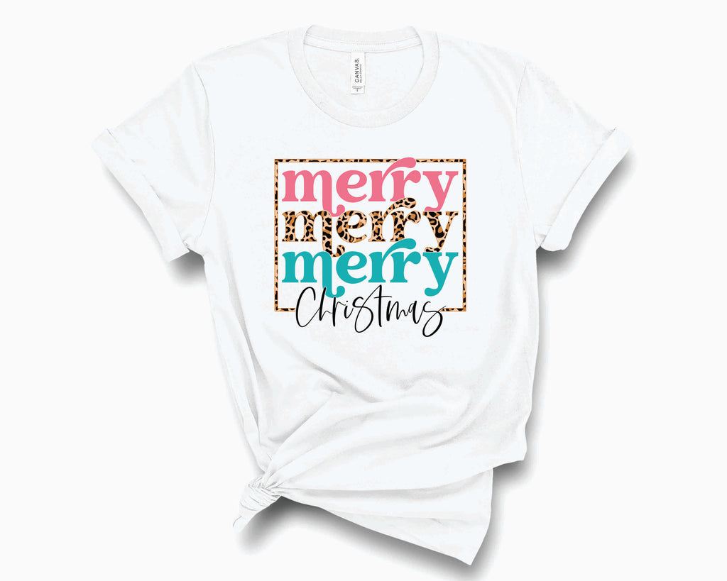 Merry Christmas Retro Stacked Pink Leopard- Transfer