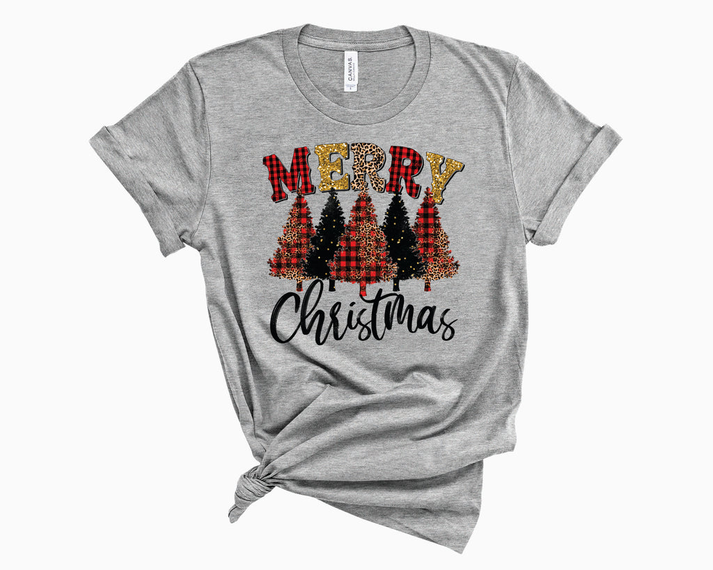 Merry Christmas Trees Grunge Leopard Plaid- Transfer