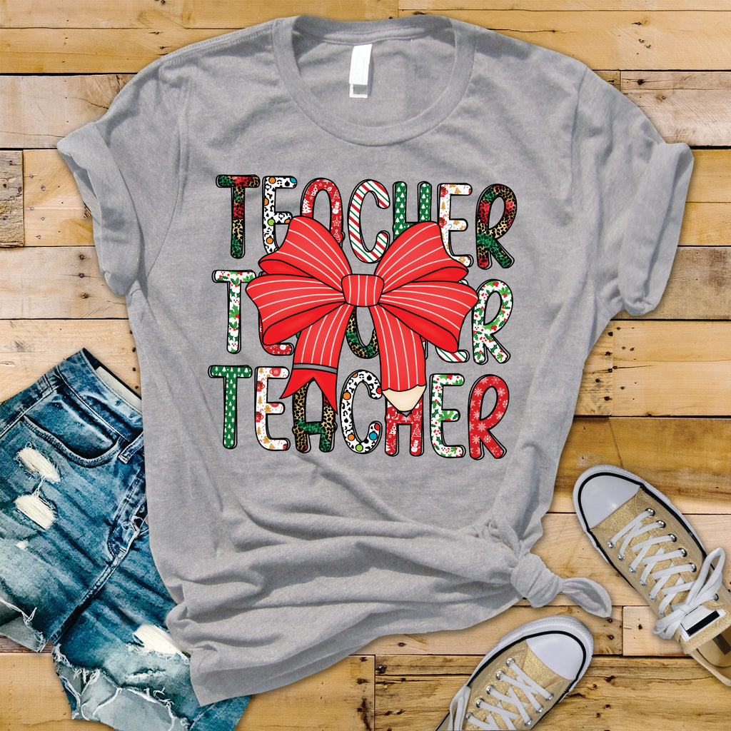Teacher Stacked Christmas Doodle - Transfer