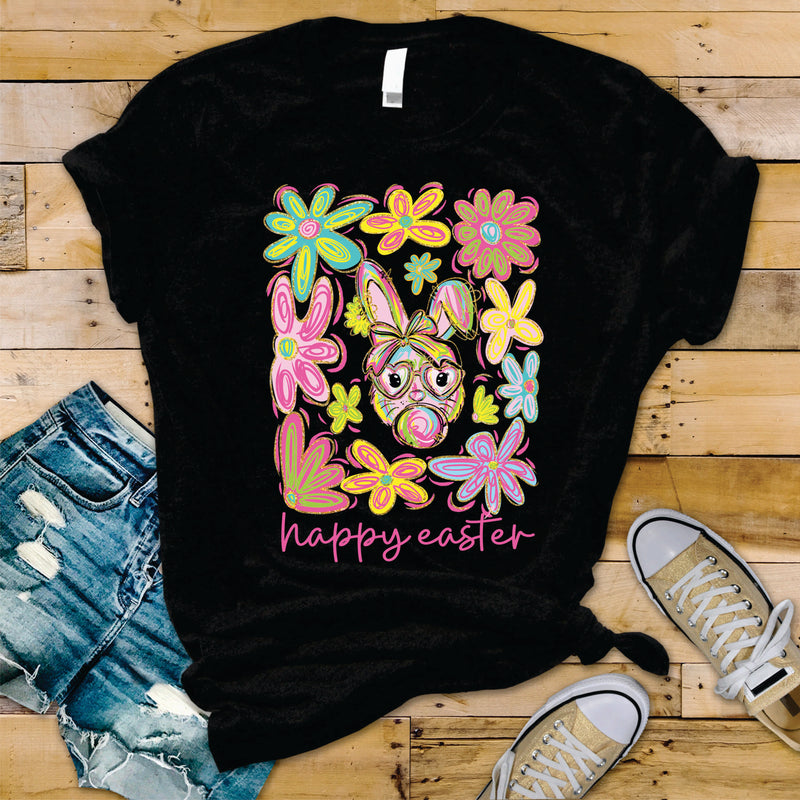 Vibrant Happy Easter Bubble Gum Bunny - Transfer