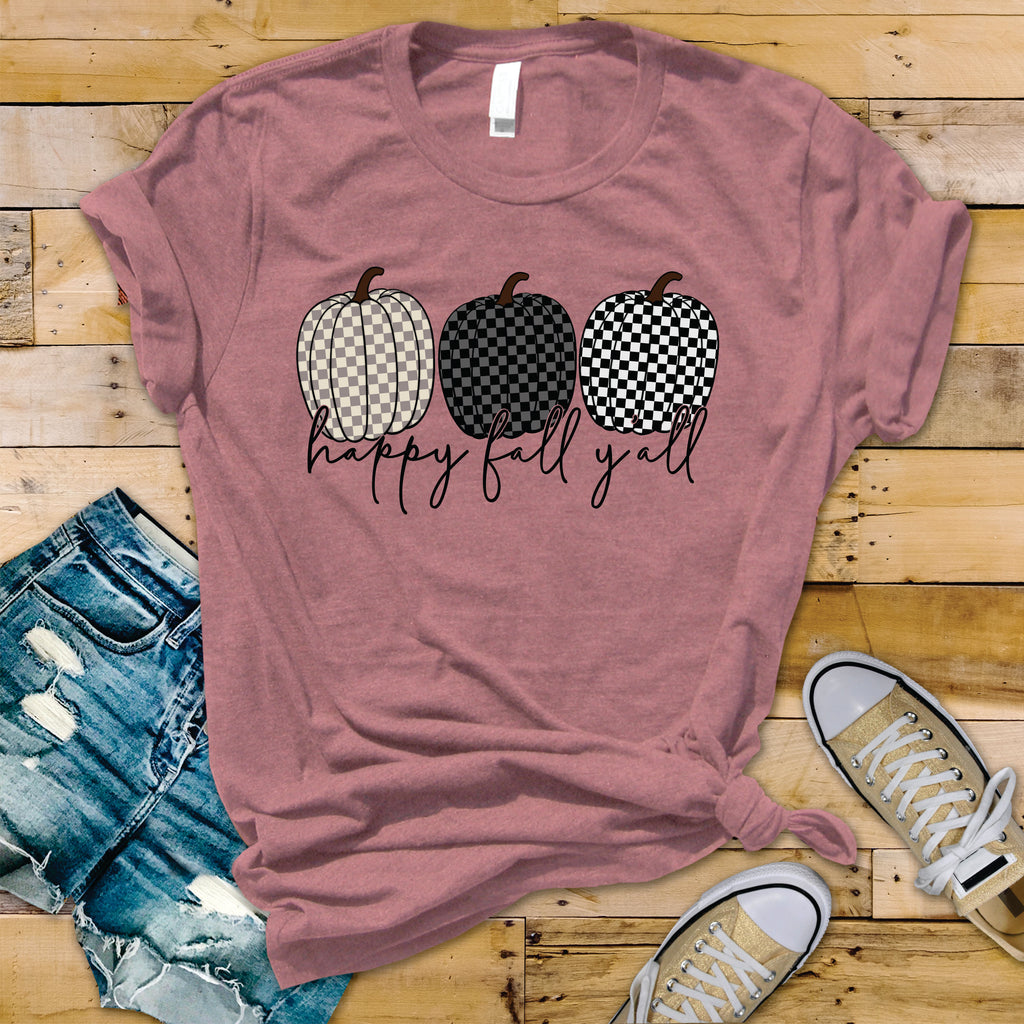 Checkered Pumpkins Happy Fall Ya'll - Transfer