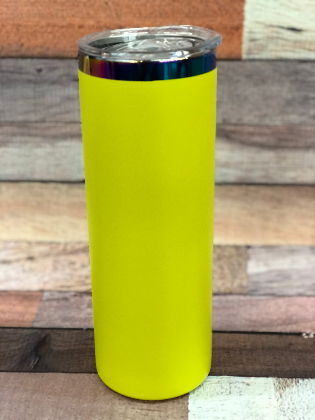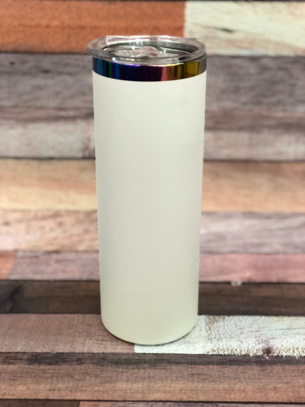 20oz powder coated tumbler with a rainbow ring under lid. Straw and lid included.