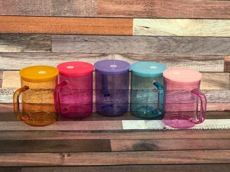 17oz transparent GLASS sublimation tumbler with handle.
