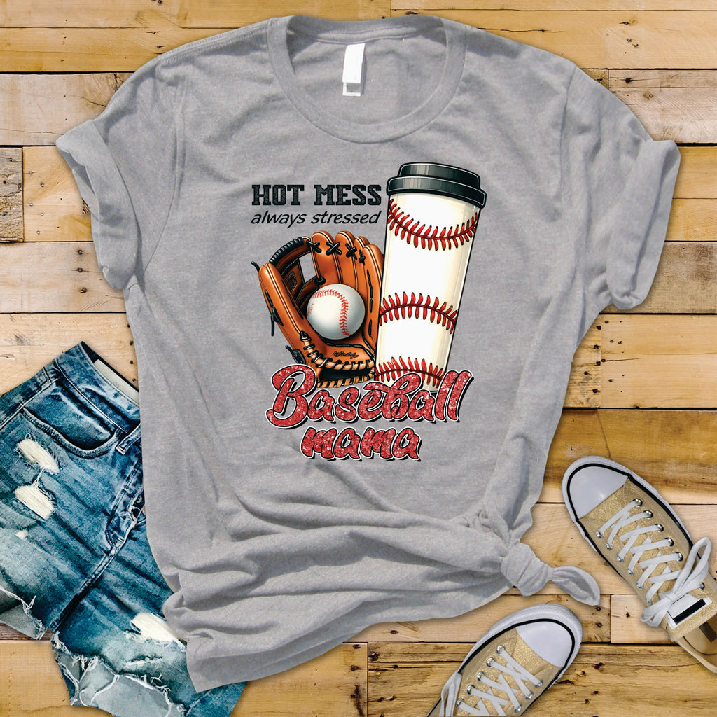 Hot Mess Always Stressed Baseball Mama Coffee - Transfer