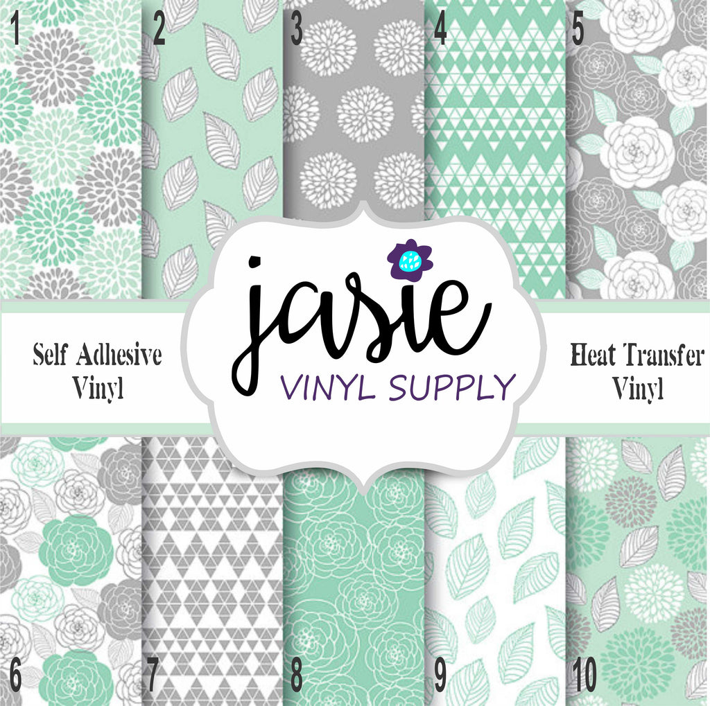 Shabby Chic Mint & Grey Printed Vinyl